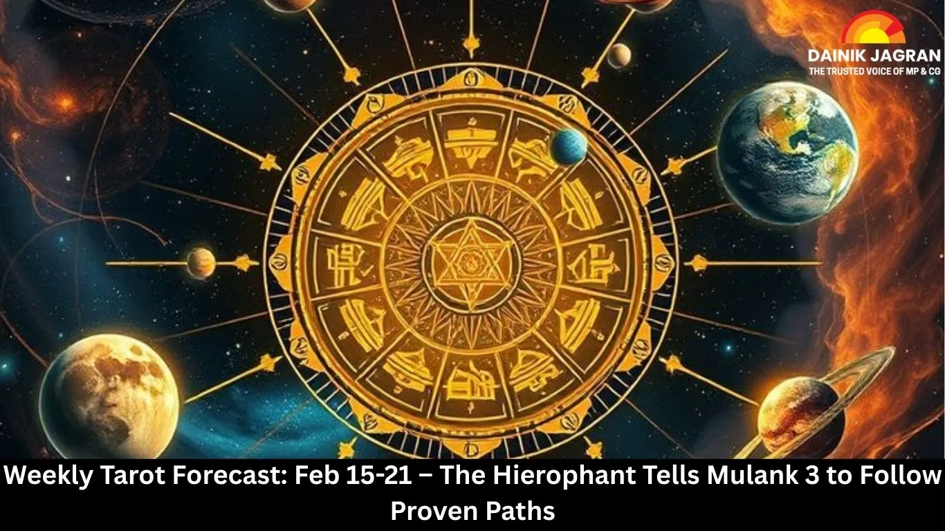 Weekly tarot forecast for February 15 to 21, 2026. The Hierophant guides Mulank 3 towards discipline, while the Queen of Cups advises Mulank 2 to protect emotional boundaries.