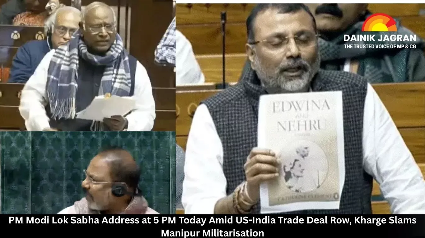 Prime Minister Narendra Modi is set to address the Lok Sabha at 5 PM today, marking his first speech after the landmark US-India trade deal slashed tariffs from 50% to 18%. The session unfolds amid high drama, with Congress President Mallikarjun Kharge slamming the BJP government in Rajya Sabha, calling Manipur a "militarised zone" and accusing it of treating women as mere vote banks.