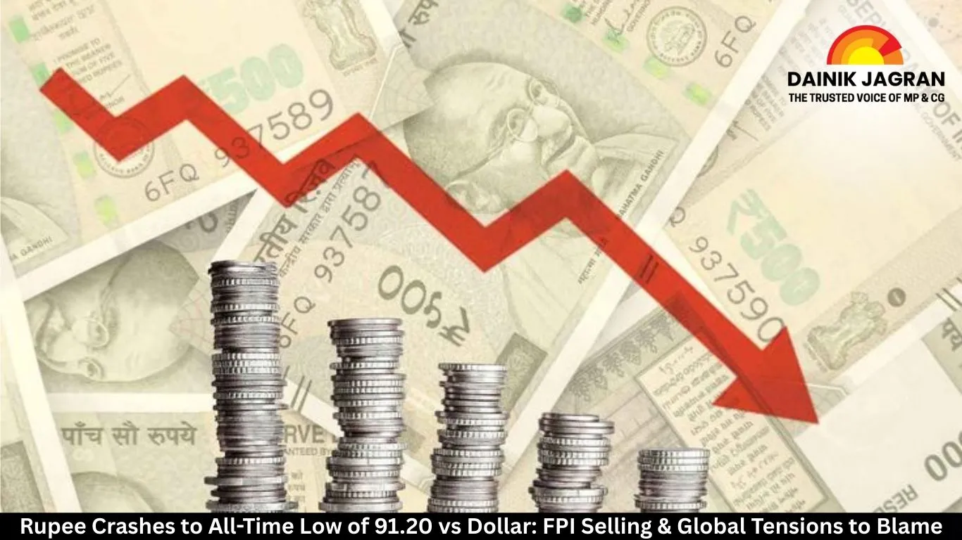 Rupee Crashes to All-Time Low of 91.20 vs Dollar: FPI Selling & Global Tensions to Blame