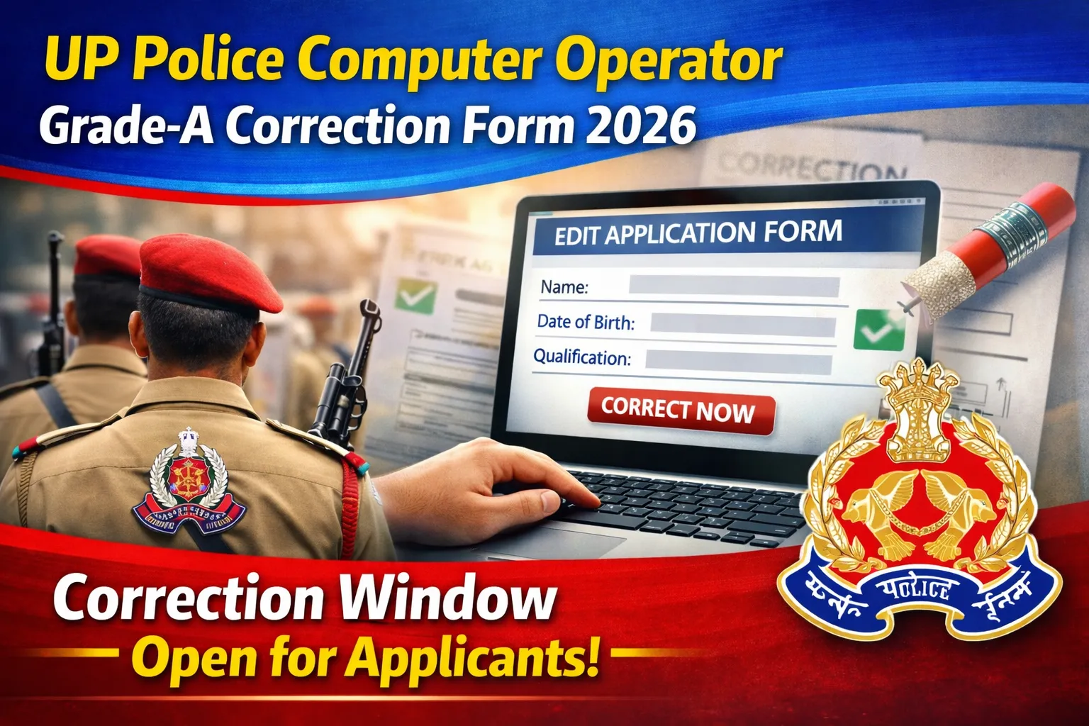 UP Police Computer Operator Grade-A Correction Form 2026 Released, Window Open for Applicants
