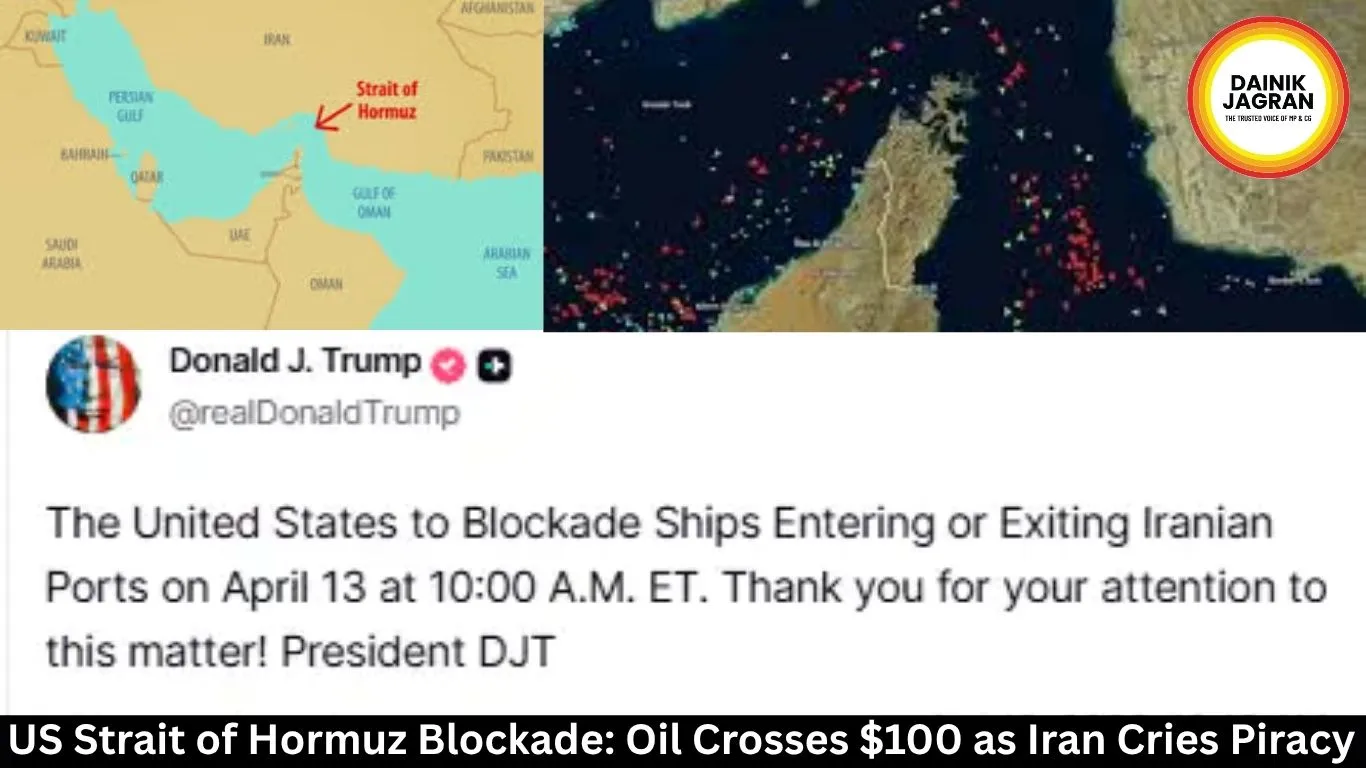 US Central Command begins Strait of Hormuz blockade of Iranian ports from 7:30 pm IST on April 13 after failed Pakistan talks. Iran calls it illegal piracy while crude oil prices surge past $100 a barrel.