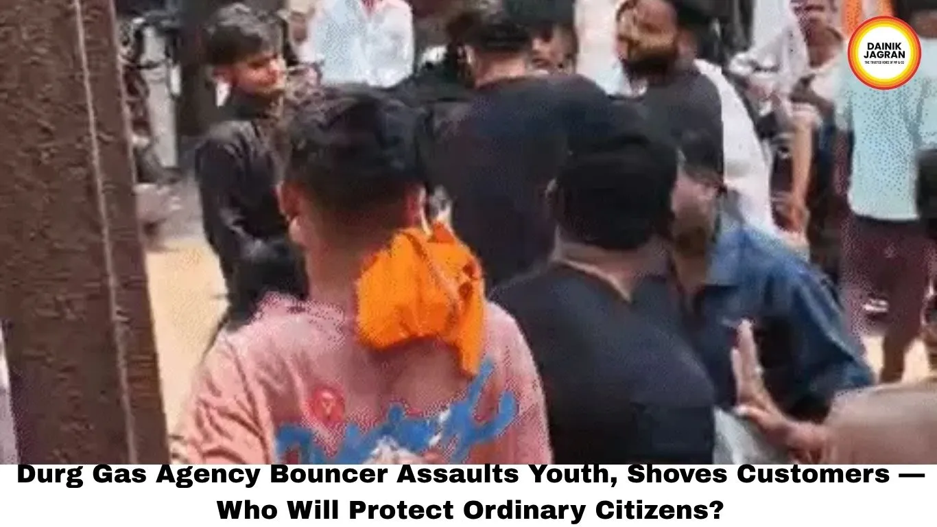 In a deeply troubling incident that has sparked outrage across the Durg-Bhilai region, a bouncer deployed at a local gas agency physically assaulted a young man and aggressively pushed other customers who had come simply to collect their LPG cylinders. The incident, reported widely in the local press, took place at a gas distribution agency in Durg, Chhattisgarh — a facility that is supposed to be a public service point for ordinary households.