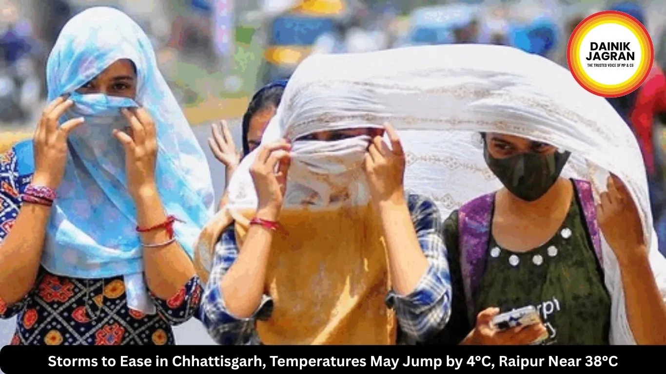 Chhattisgarh weather update: storm activity to ease as temperatures rise by 4°C, Raipur likely to cross 38°C with brief rain alert.