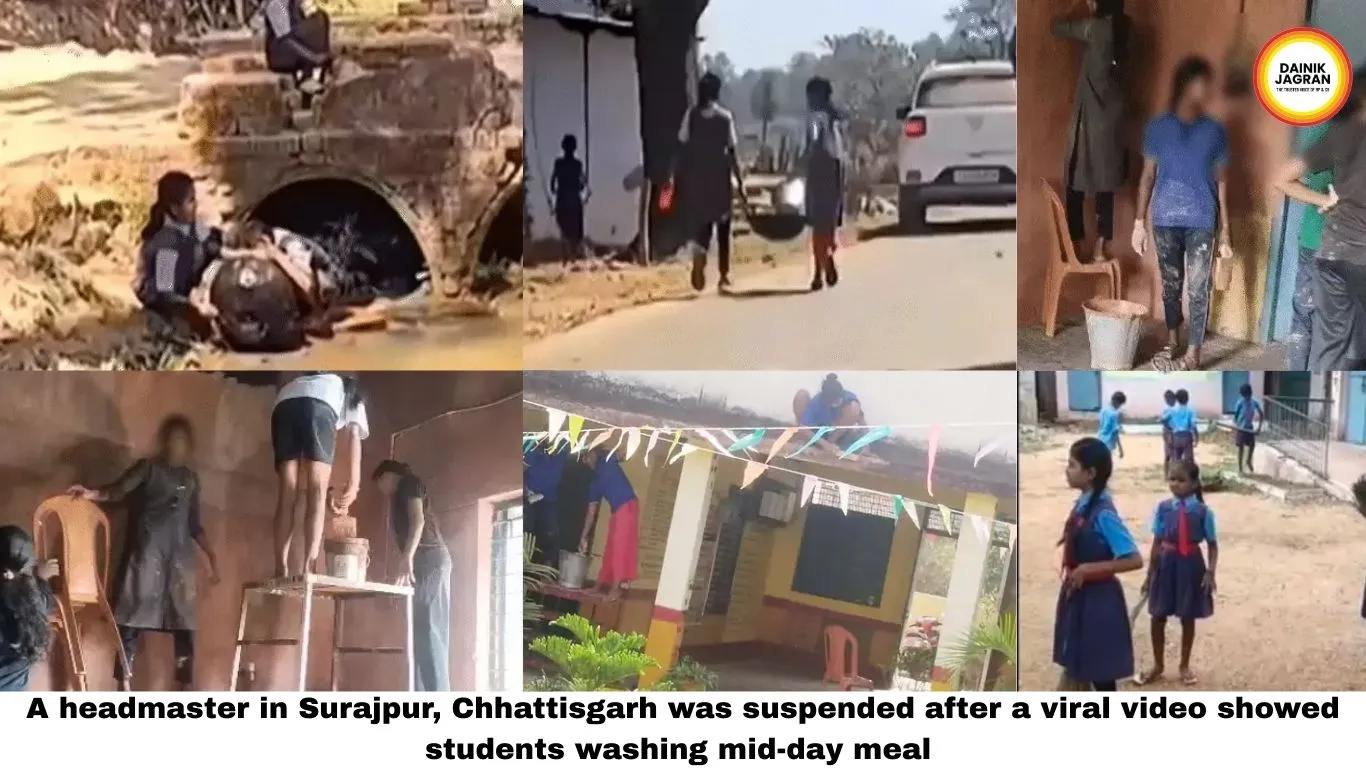 A headmaster in Surajpur, Chhattisgarh was suspended after a viral video showed students washing mid-day meal utensils in dirty canal water. Full details here.