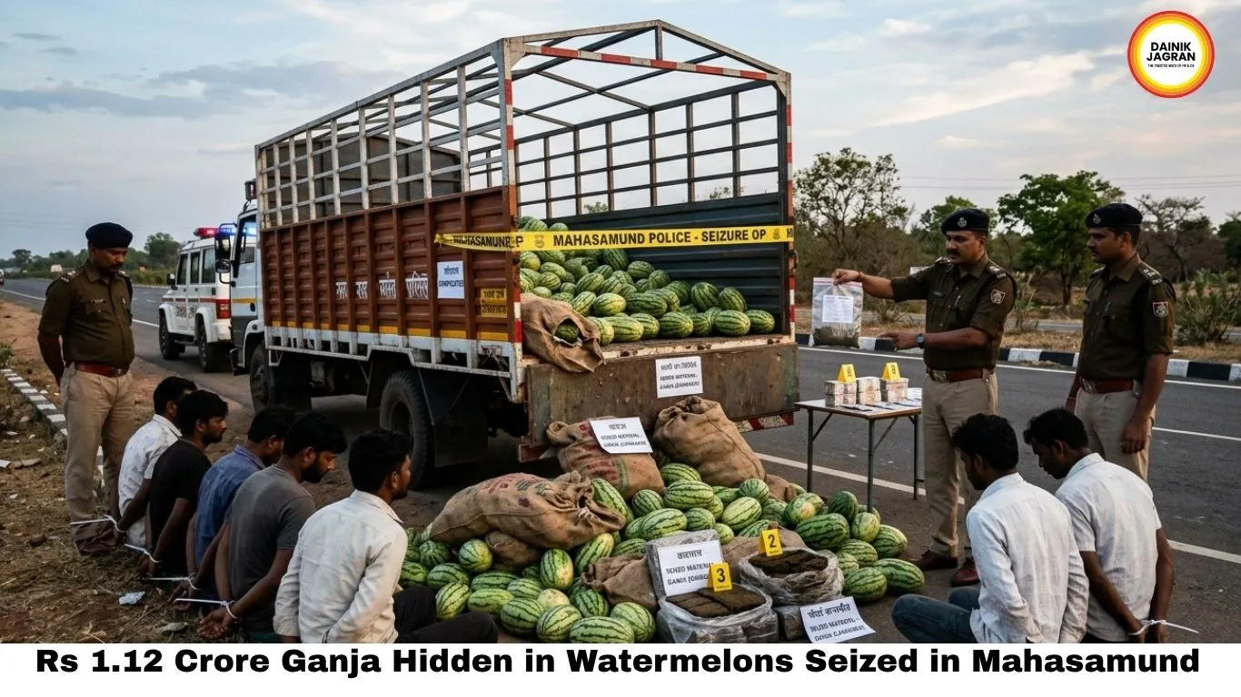 In a sharp intelligence-driven operation, Mahasamund Police in Chhattisgarh have seized cannabis worth Rs 1.12 crore that was being smuggled from Odisha concealed beneath a load of watermelons in a pickup vehicle. Six individuals have been arrested in connection with the haul — two residents of Madhya Pradesh and four from Uttar Pradesh — in what police are describing as a significant strike against an inter-state drug trafficking network that was using the summer fruit season as cover for its operations.