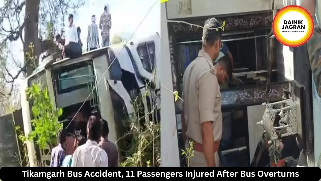 A Tikamgarh bus accident on Tuesday morning left 11 passengers injured after a private passenger bus overturned near Bada Gaon Road, around five kilometres from the district headquarters. The bus, operated by a private transport company, was travelling from Indore to Tikamgarh when it reportedly lost control and toppled near a crossing close to Hanuman Temple under the Kotwali police station limits.