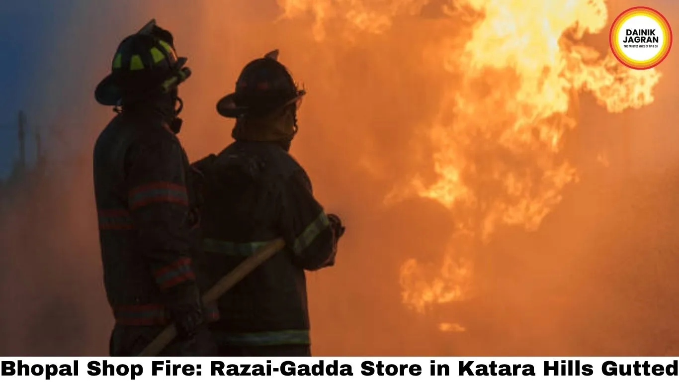 A quilt-mattress shop in Bhopal's Katara Hills caught fire late night with 20-ft flames. Fire brigade delayed 45 mins; shop completely destroyed. Full story.