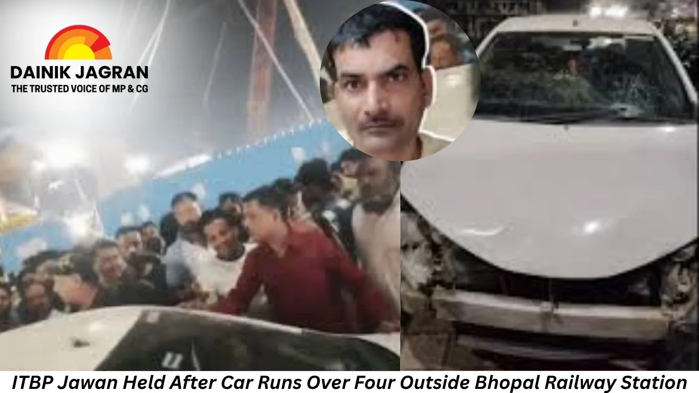 Four pedestrians were injured on Monday evening after a speeding car driven by an Indo-Tibetan Border Police (ITBP) constable rammed into them outside the Bhopal railway station. The accused, identified as Constable Rajendra, was caught by bystanders while trying to flee and later handed over to the police.