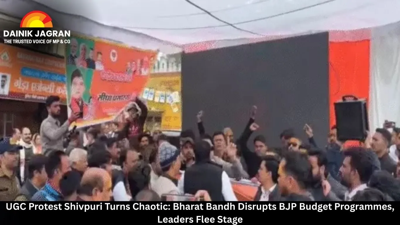 Chaos gripped Shivpuri district today as a fierce UGC protest Shivpuri clashed with BJP's budget programmes during the nationwide Bharat Bandh against UGC laws. Protesters stormed venues, threw chairs, and forced leaders to flee, marking a tense standoff just hours ago. This disruption highlights growing unrest over education reforms amid budget discussions.