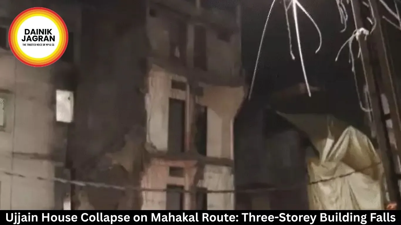 Ujjain witnessed a narrow escape from a potential disaster on Monday evening when a three-storey house suddenly collapsed in the Gebi Hanuman area along Dhaba Road. The incident occurred around 7 pm on a busy route frequently used by devotees heading to Mahakal Temple, Gopal Temple, and the Shipra River. No casualties were reported, thanks to the timely intervention of local residents who halted all movement after noticing the structure tilting earlier in the evening.